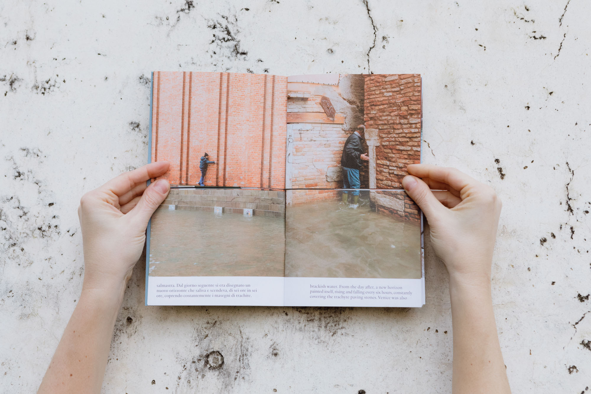 We decided to avoid an aggressive chronicle of the damage to respect the people who were affected, so as to show the hanging, fragile atmosphere of Venice, its lagoon and the Venetians. Accompanying the pictures, a text that shows an uncertain and dystopic imaginary and invites us to reflect on the future of the city.